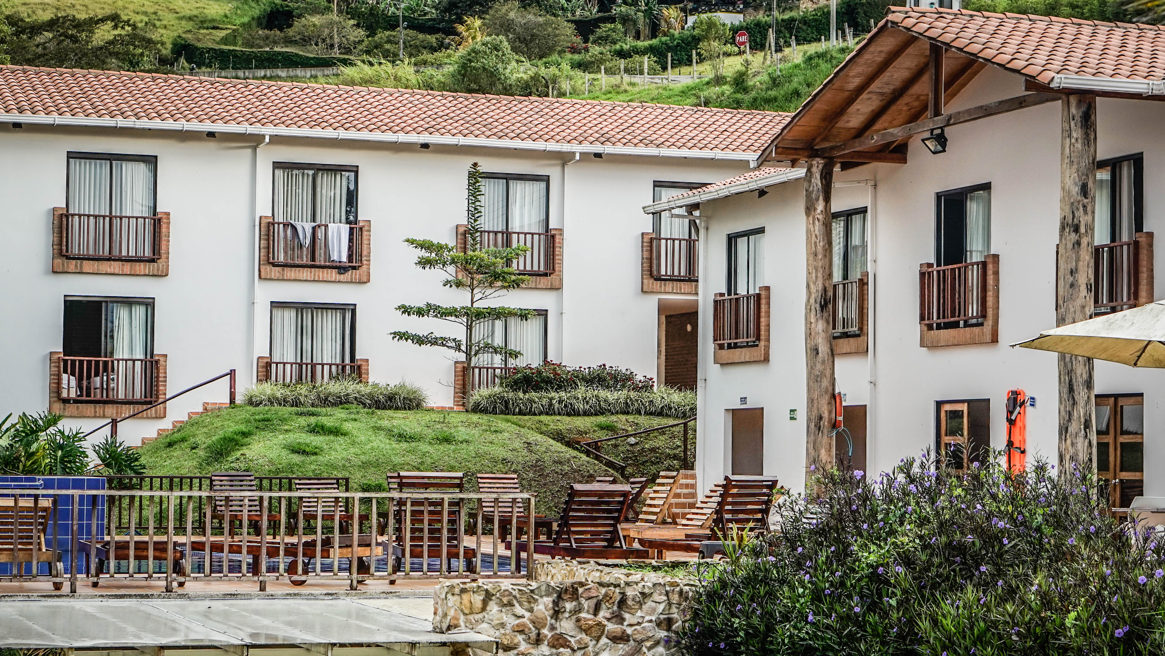 LA HUERTA HOTEL is a beautifully located countryside hotel in Valle de Cauca in Colombia. We had a pleasure to spend there two nights and had simply the best rest a traveler can think of. We enjoyed immensely the perfect view from the window and the restaurant and felt wonderful surrounded by green hills and fields.