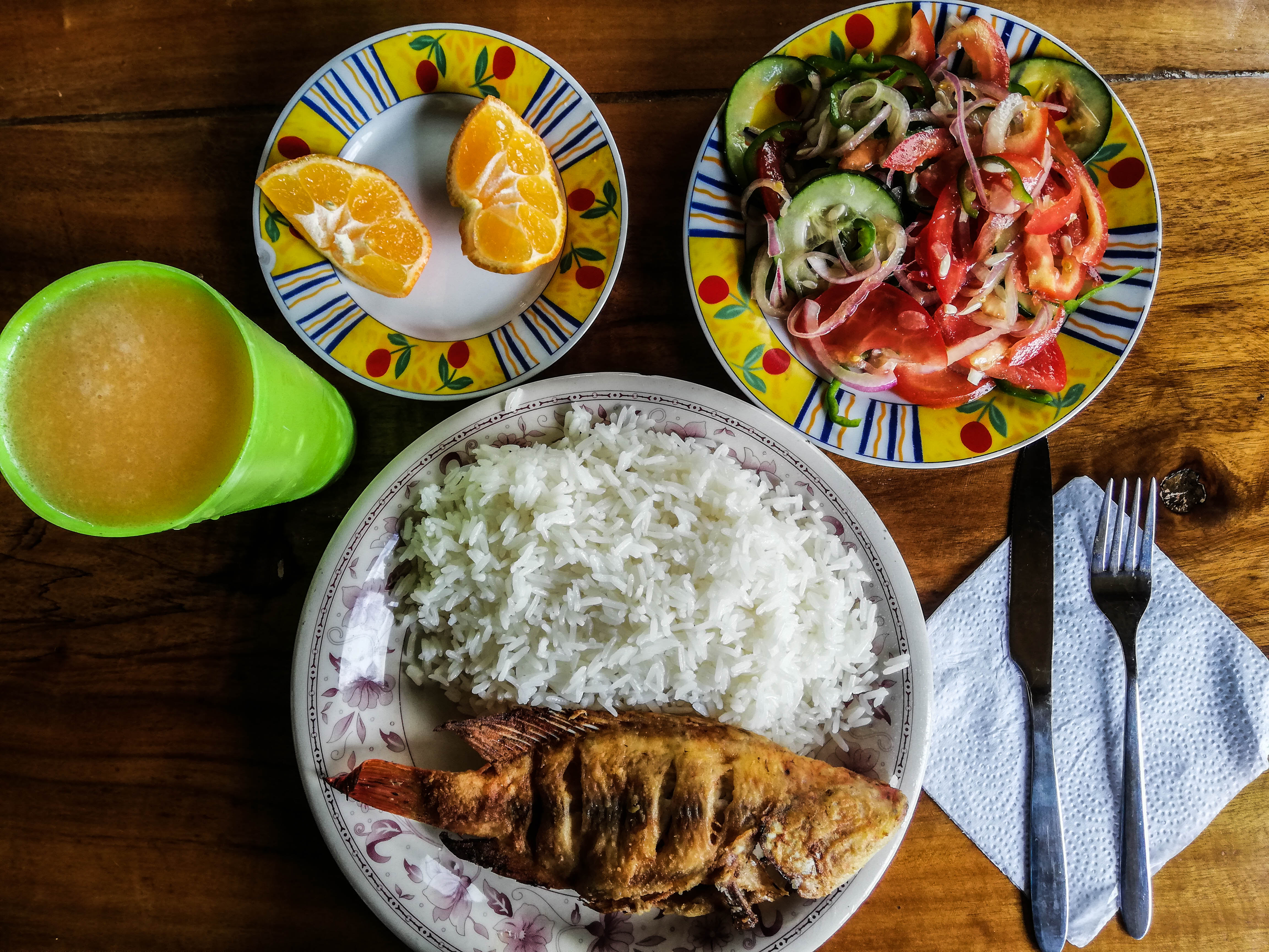The rural feeling directly takes over your system. Dogs, chicken, roosters, and turkeys are running around the property. The trees are growing with juicy fruits on them and the fish swim in the pond waiting to be taken out for your meal.
