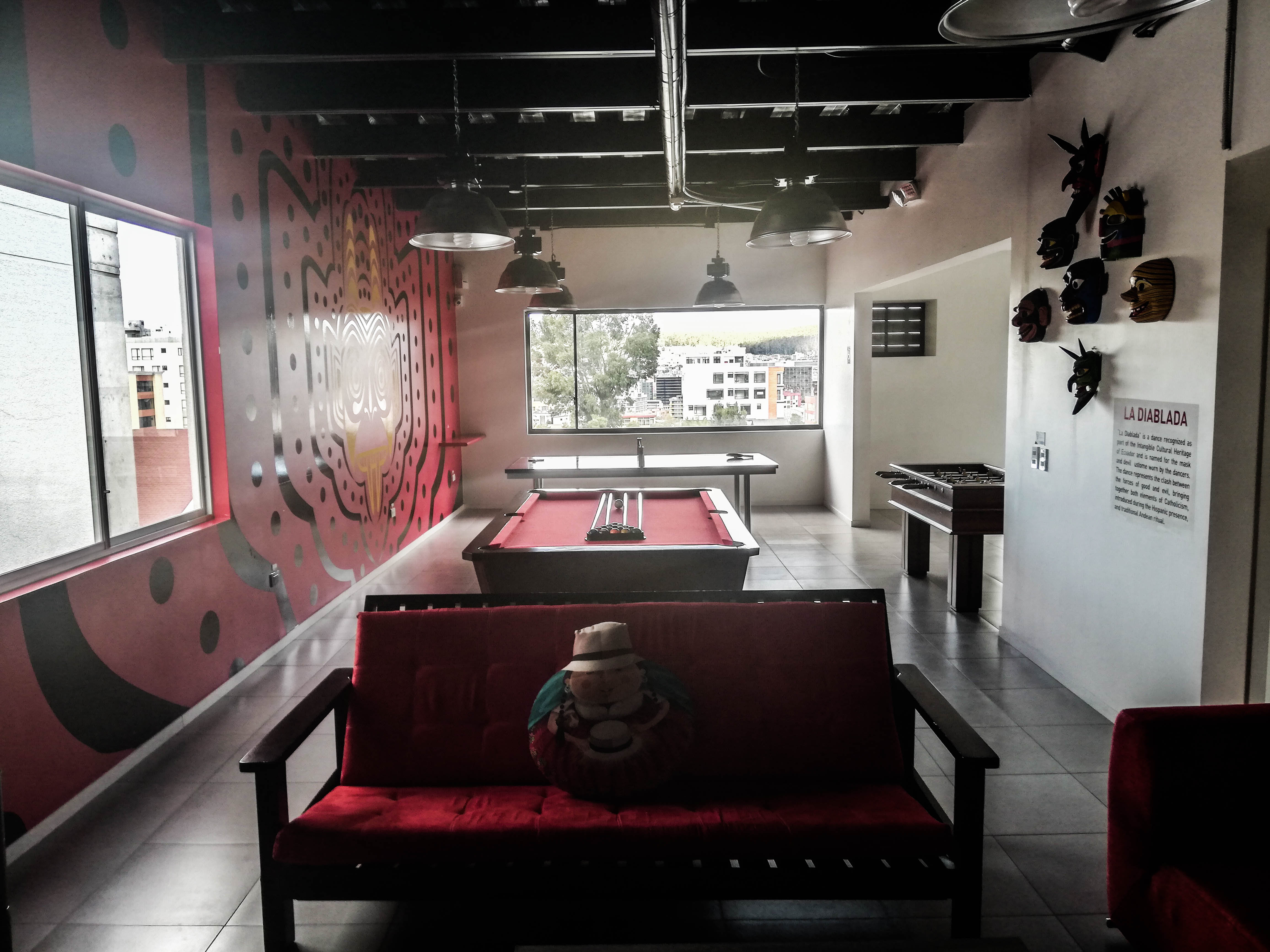 Fast free wifi is provided everywhere on the premises. There is a storage area for your luggage available at the reception. Within the facilities, you will find a cozy bar, a reading room, and safety lockers. Services of the hostel include laundry service, complimentary parking, a Ping-Pong table, table soccer, LCD Television equipped with a video game console. The hostel works with a tour operator called Ecua Experience, which offers all types of exciting tours.