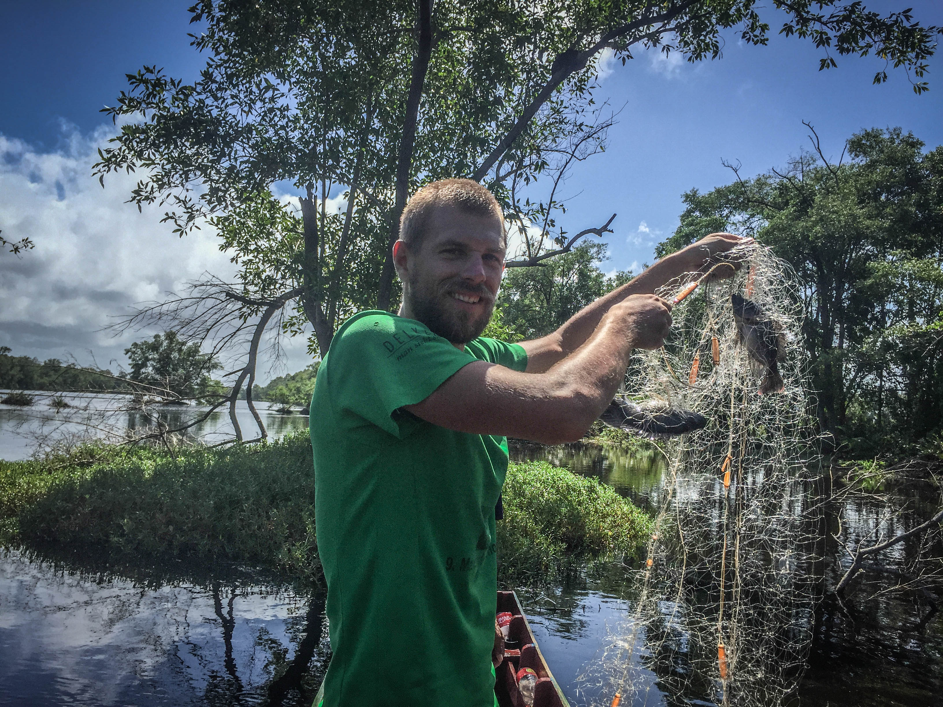 In the little harbor of New Amsterdam, right across the river from where Fritz the fisherman lives, you can set off for a pink dolphin spotting excursion. This specie can be seen in a narrow, wooden motorboat. Your guide will show you the best places to meet these extremely intelligent animals. Once you spot the dolphins, the rest of them show up in no time jumping around the boat and playing. We were quite sure that they are showing off and enjoy our calls of admiration just like we liked their company.