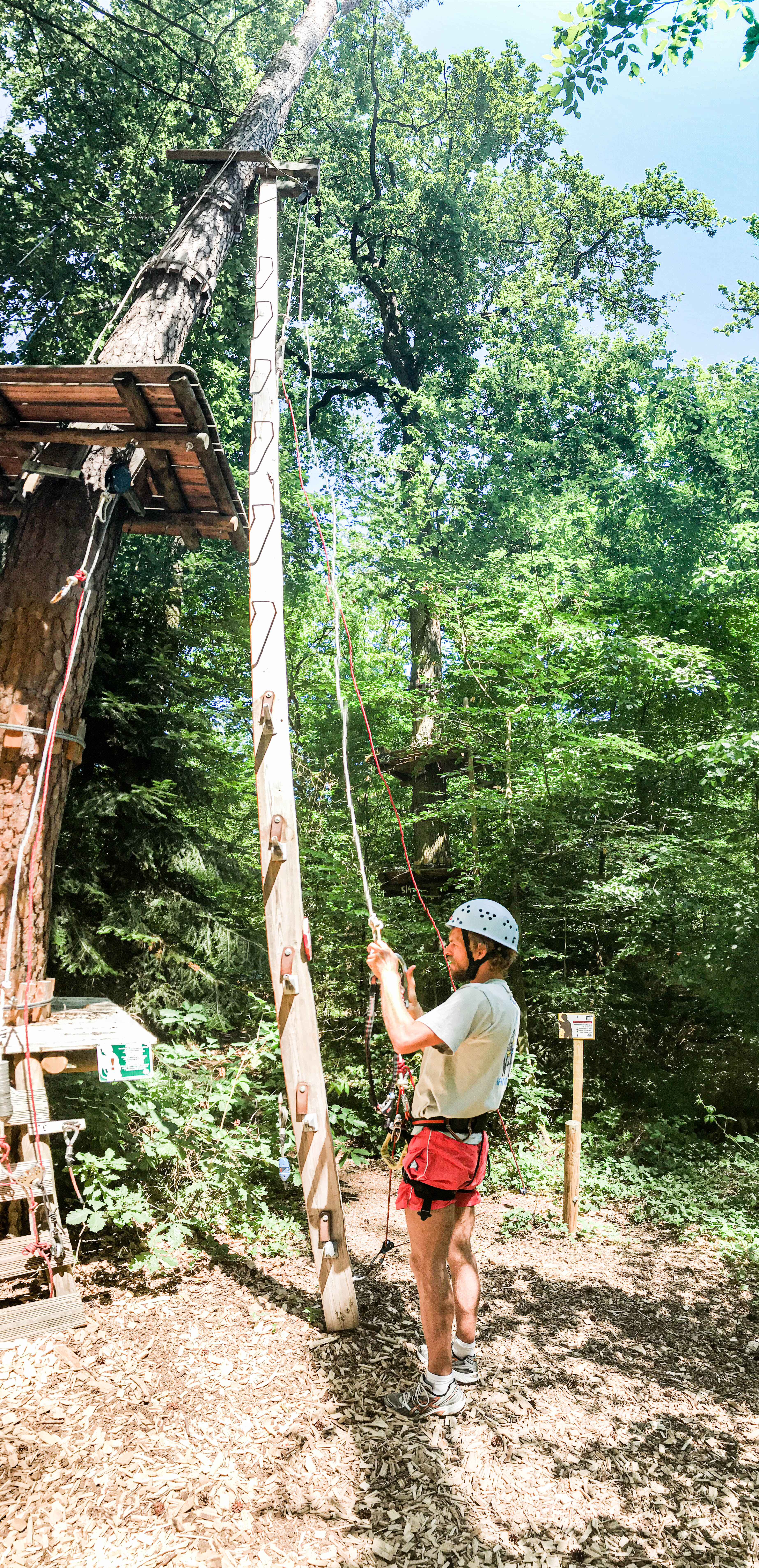 The Fun Forest Adventure Park in Kandel offers 24 exciting and varied courses in the middle of the Bienwald on an area of 7 hectares. The Parcours are all hand made and climbers beginning from the age of 3 can start to explore their skills. Course with numbers up to the number 6 is for beginners. The difficulty degree increases with each number. In the end, the ironman parkour awaits you with a 20m freefall. Every parkour is worth trying since there are all different and every parkour has their own hacks.